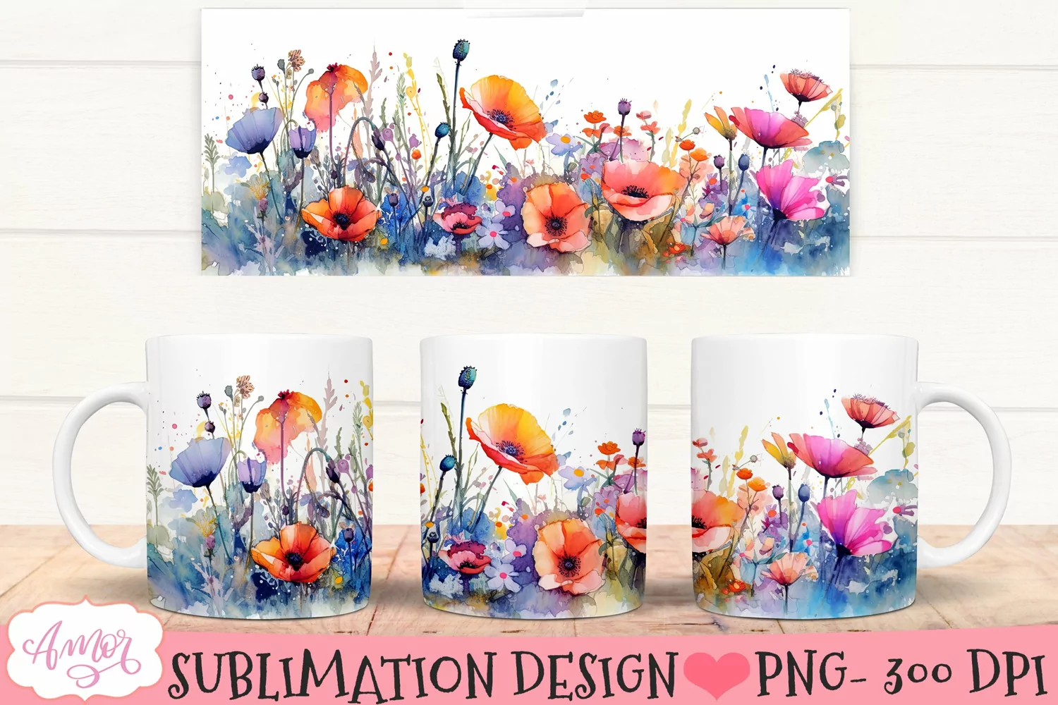 Watercolor wildflower design for 11oz mug sublimation. This graphic measures 8,5" X 3,5".