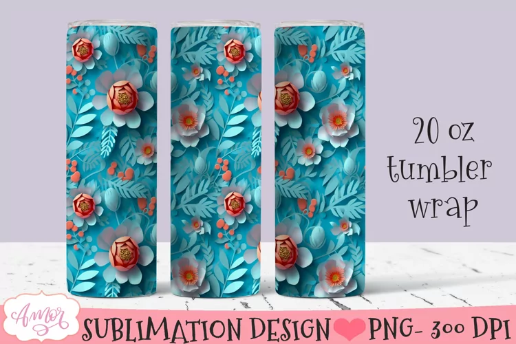 3D flowers design for 20oz tumbler sublimation. This listing includes only a seamless straight version. Each graphic measures 2850 pixels x 2490 pixels.