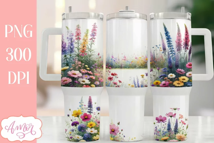 Wildflowers garden 40 oz tumbler PNG for sublimation