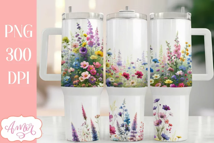 Watercolor flowers design for 40oz tumbler sublimation. Each graphic measures 3750 pixels X 1770 pixels.