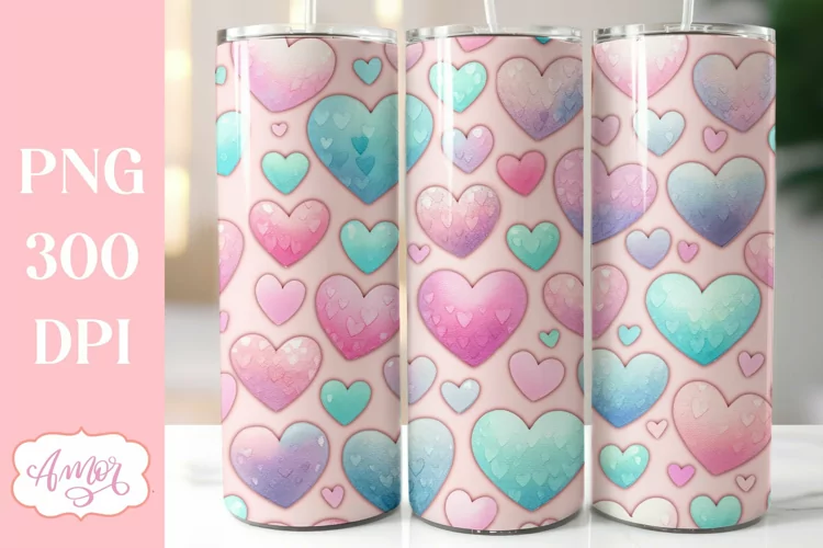Valentines Day Pastel Colors Hearts Pattern Customizable Template Png For Sublimation 20oz Tumbler Template 20oz Tumbler Wrap Seamless Tumbler Png Valentines Tumbler Png Love Tumbler Wrap Png