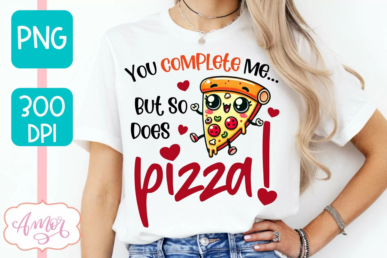 "You complete me... but so does pizza" design for sublimation. You may use this PNG design for sublimation on T-shirts, mugs, tote bags, tumblers, and more!!