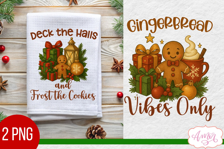 2 Christmas season PNG designs for kitchen towel sublimation. Each graphic measures 4000 pixels wide
