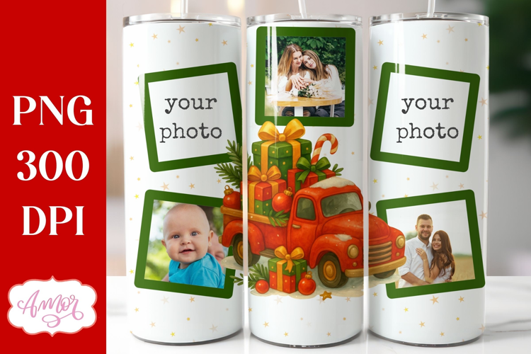 Christmas Photo tumbler wrap sublimation, Christmas truck