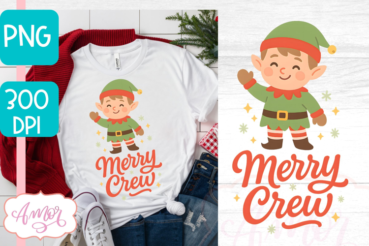 Cute Christmas elf PNG, Merry Crew PNG sublimation example image 1