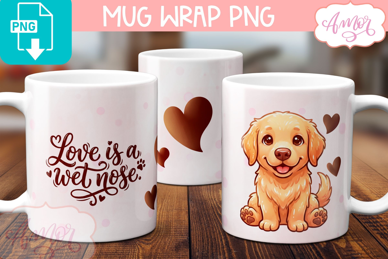 "Love is a wet nose" design for mug sublimation. Measurements: 8.5" X 3.5" for the 11oz templates and 9" X 4" for the 15oz mugs.