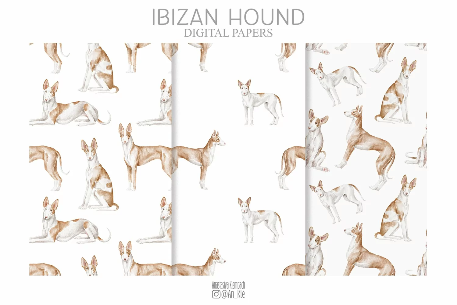 Seamless Patterns Scrapbooking Digital Paper Pack Puppy Dog Hound Dog Dog Breed Clipart Watercolour Dogs Ibizan Hound Dog Podenco Ibicenco Scrapbook Paper Downloadable