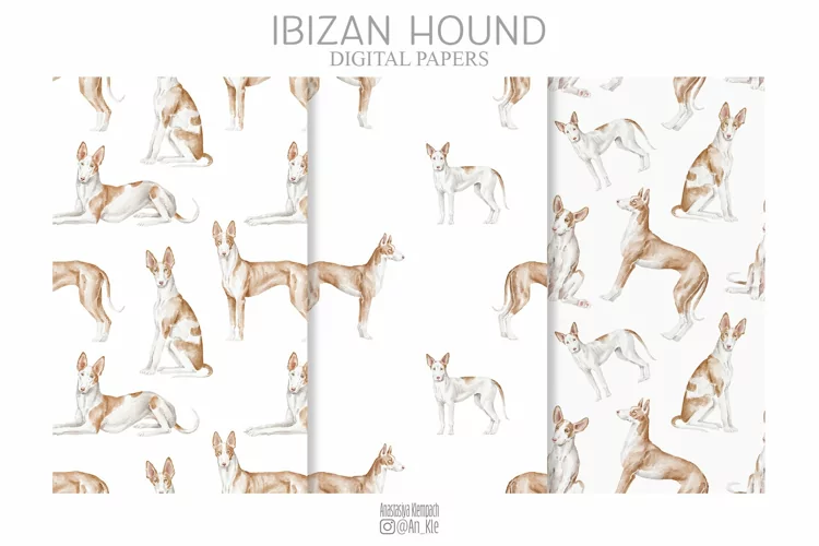 IBIZAN HOUND dogs seamless patterns, digital papers 12x12 inches jpeg, png 300dpi
