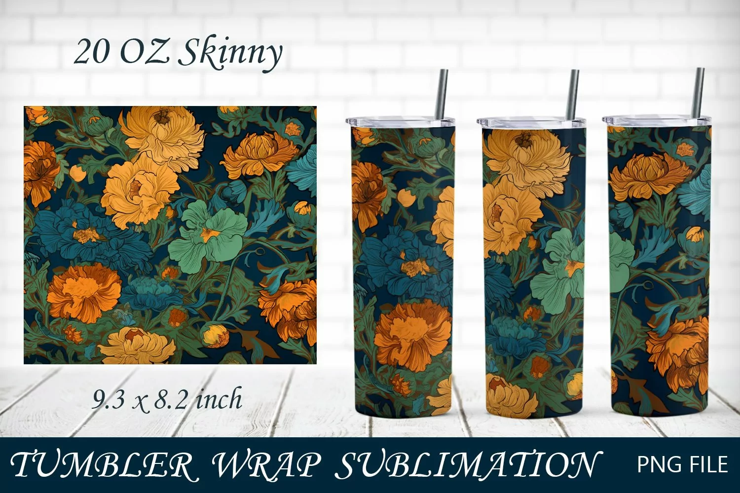 Skinny tumbler wrap with flowers, Floral tumbler 20 oz png example image 1