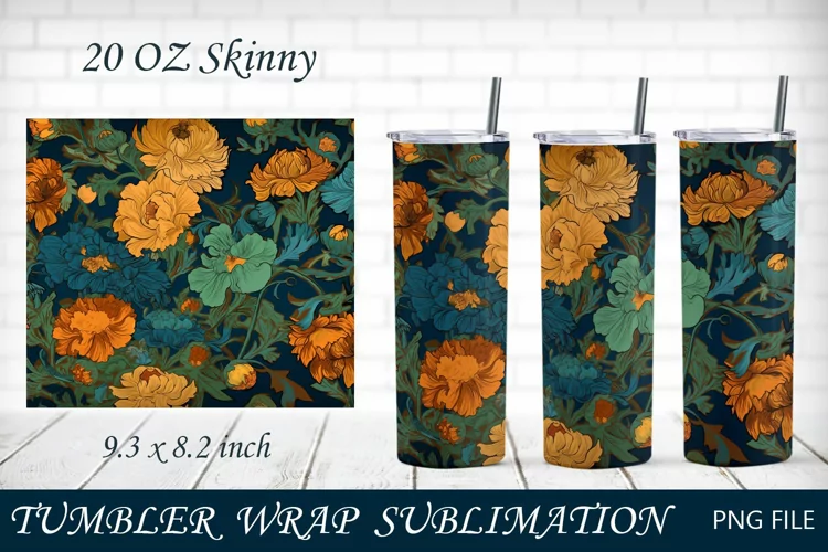 Botanical Digital Paper Flower Tumbler Tumbler Floral 20 Oz Tumbler Wrap Tumbler 20 Oz Floral Tumbler Wrap 20 Oz Skinny Tumbler Sublimation Png Impressionism Style Flowers Tumbler Sumlimation Flowers And Leaves Sublimation