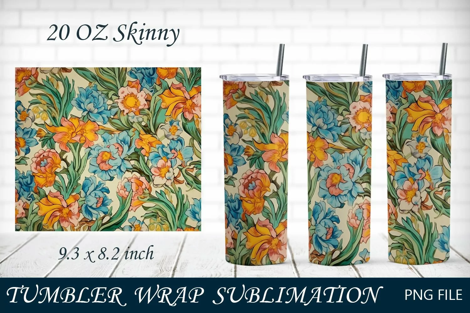 Botanical Digital Paper 20 Oz Tumbler Wrap Flowers Sublimation Background Floral Tumbler Wrap 20 Oz Skinny Tumbler Sublimation Png Retro Flower Tumbler Impressionism Style Flowers And Leaves Sublimation Retro Flowers Ornament Tumbler 20 Oz Flowers
