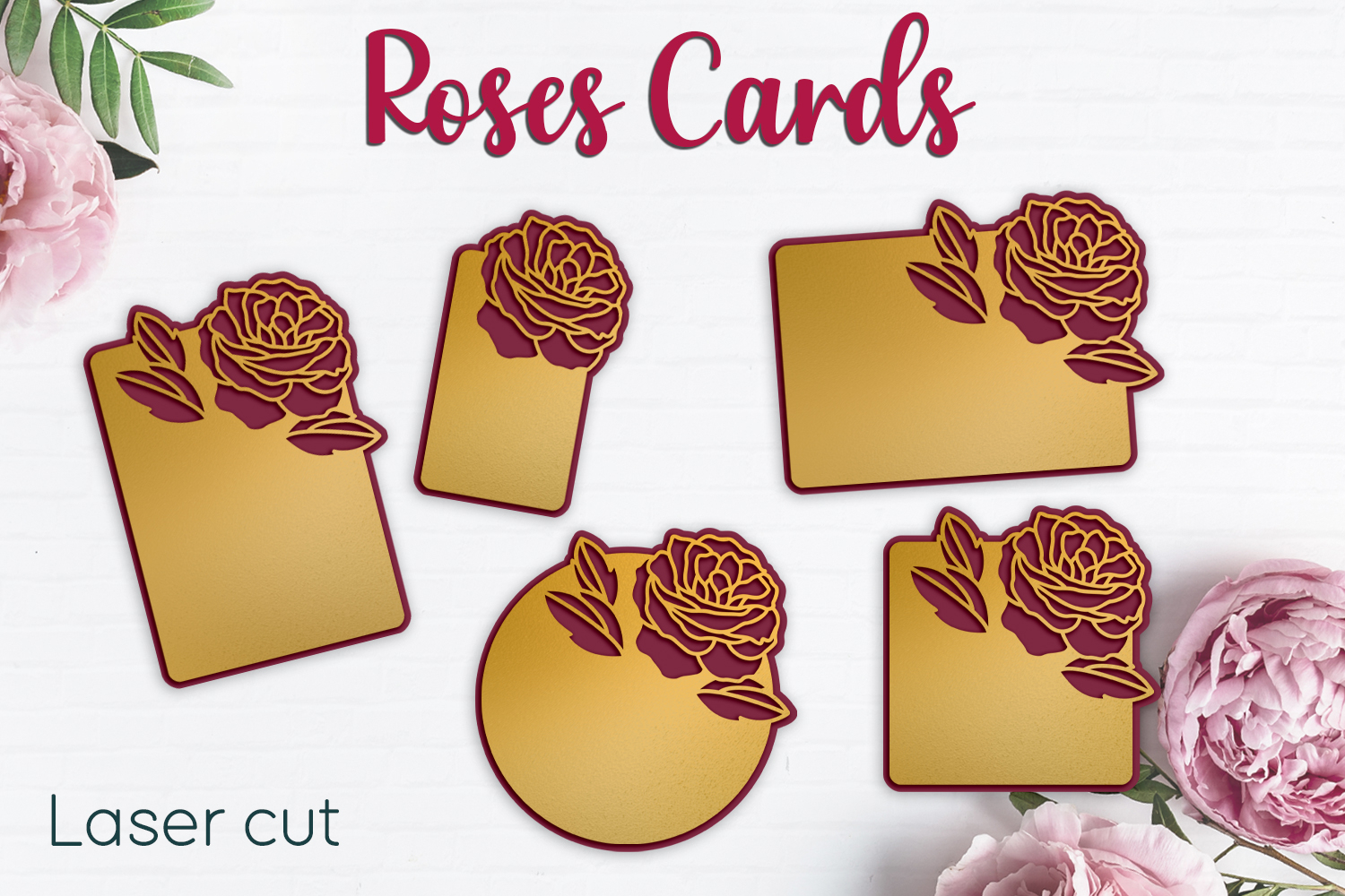 Set of Roses cards, 5 layered designs