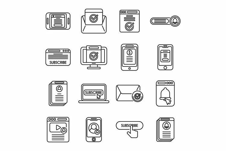 Subscriotion icons set outline vector. Business membership. Model envelope. Formats: JPG, EPS, AI, PSD,PNG, AI