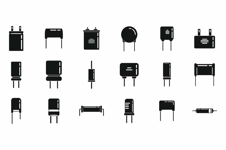 Vector Simple Black Icons Set Isolated Ceramic Polyester Bipolar Capacitor