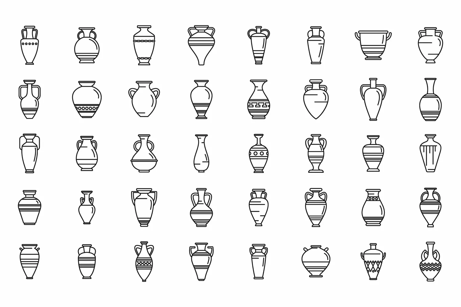 Amphora icons set outline vector. Vase pottery. Greek jar. Formats: JPG, EPS, AI, PSD,PNG, AI