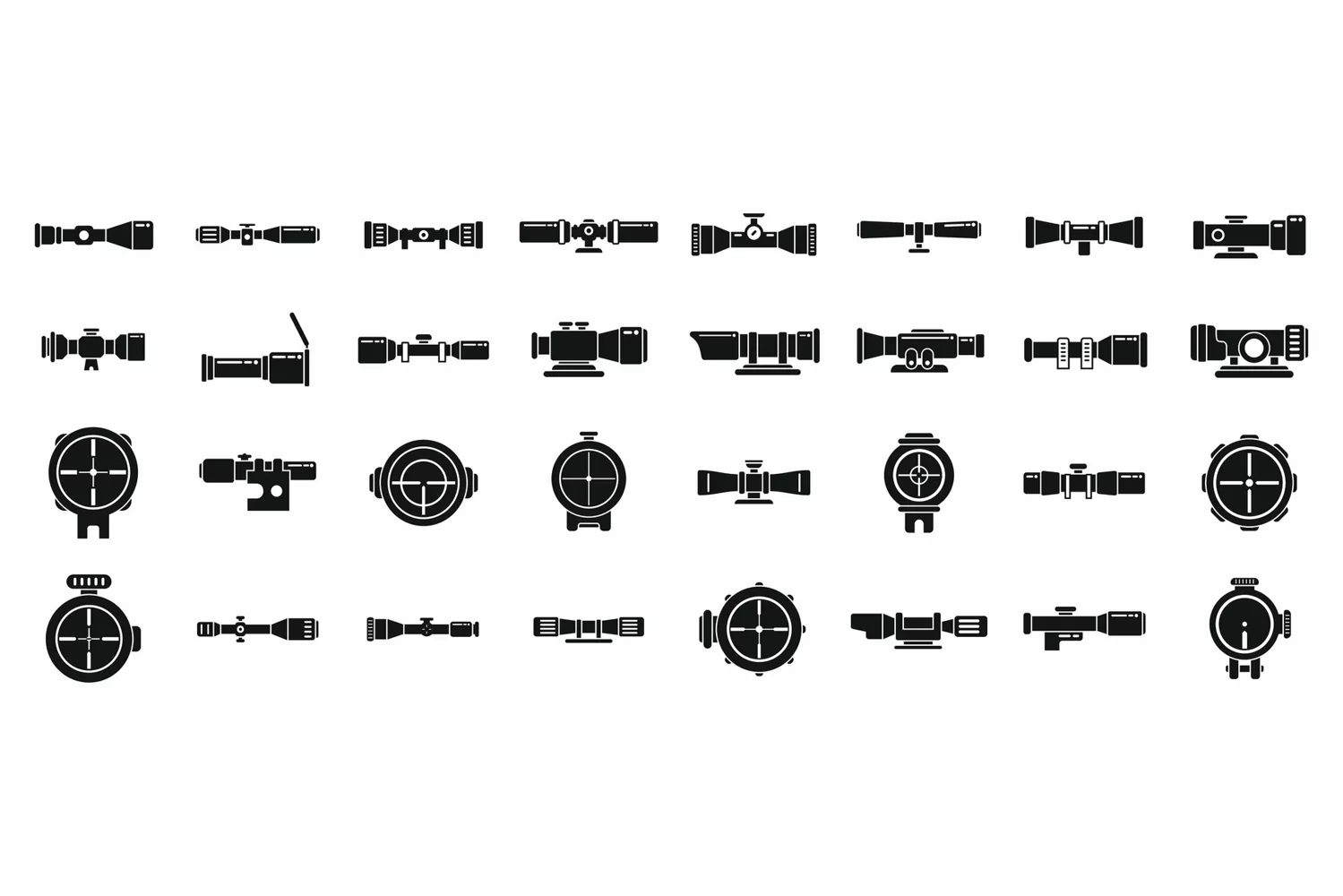 Vector Simple Black Icons Set Isolated Target Sniper Scope Telescopic Sight