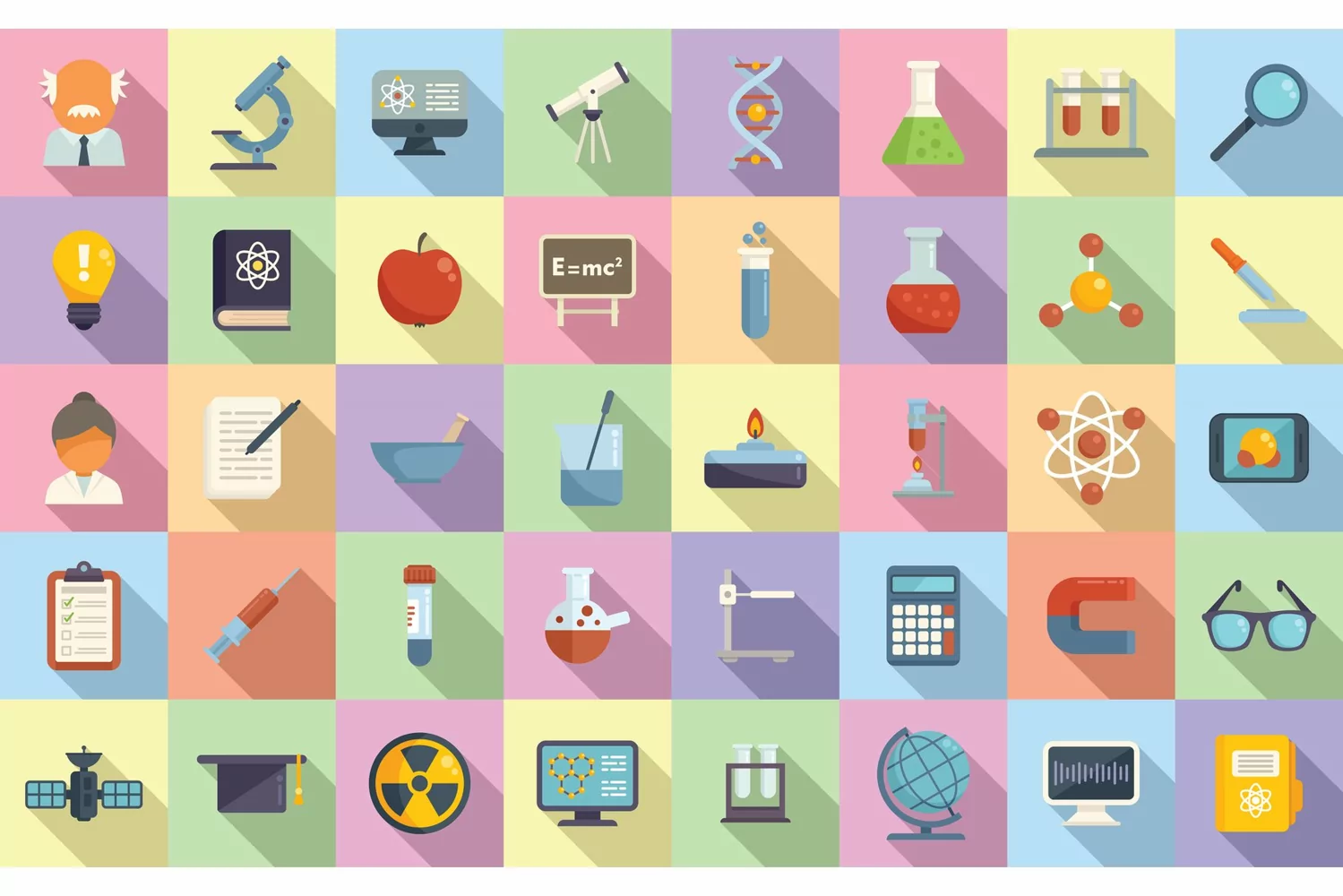 Flat Vector Icons Set Medical Chemistry Chemical Lab Formula Research Scientist
