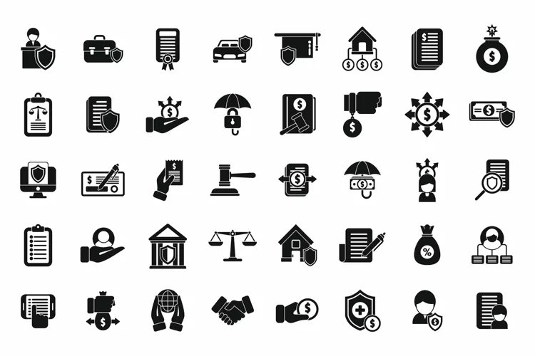 Liability icons set simple vector. Longevity annuity. Bill agreement. Formats: JPG, EPS, AI, PSD,PNG, AI