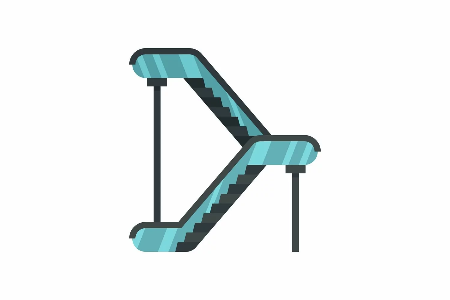 Flat Vector Icon Office Interior Shopping Lift Double Mall Escalator