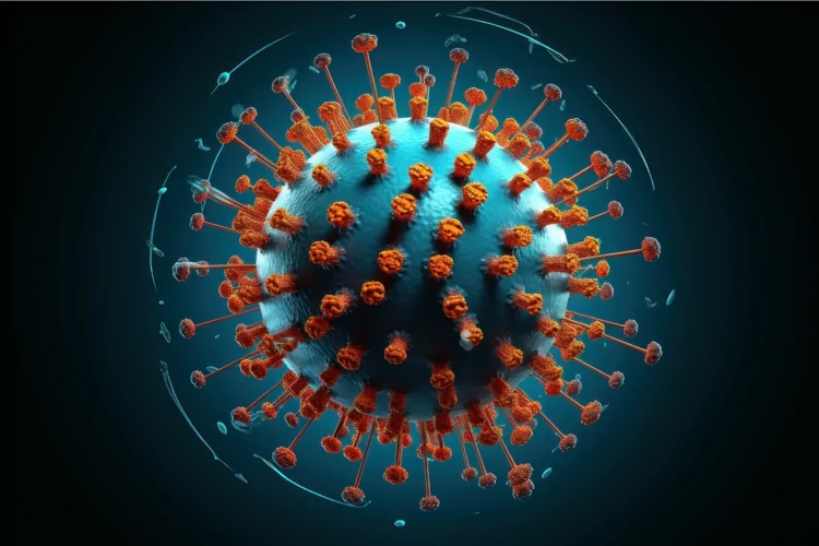 Medical illustration of a virus-shaped 3D sphere, representing the concept of illness. Generate Ai