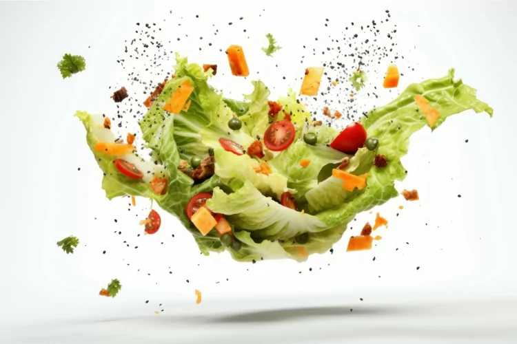 Food Green Background Cheese Diet Falling Plate Dish Salad Caesar