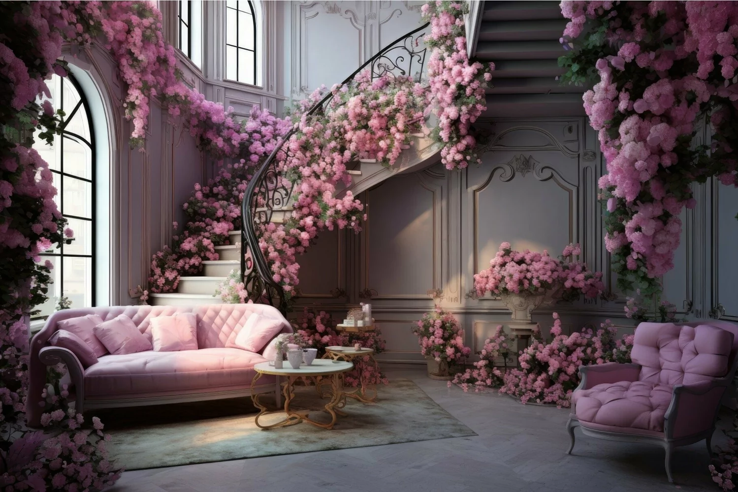 Chic Flowers glamorous interior. Generate Ai example image 1