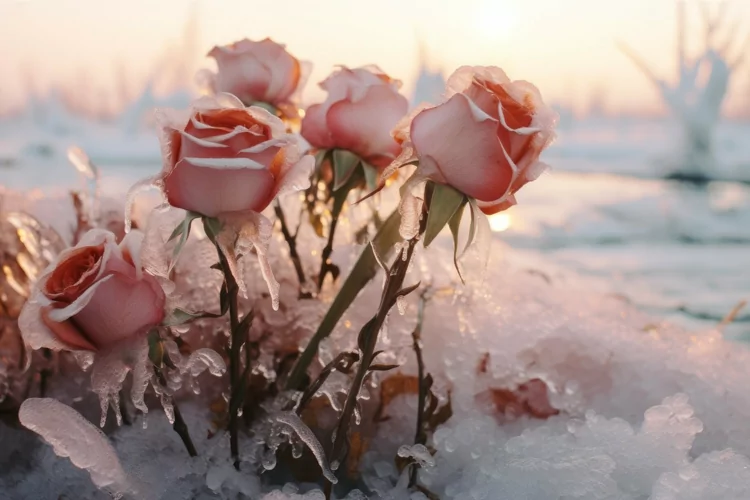Durable Frozen ice flowers. Generate Ai