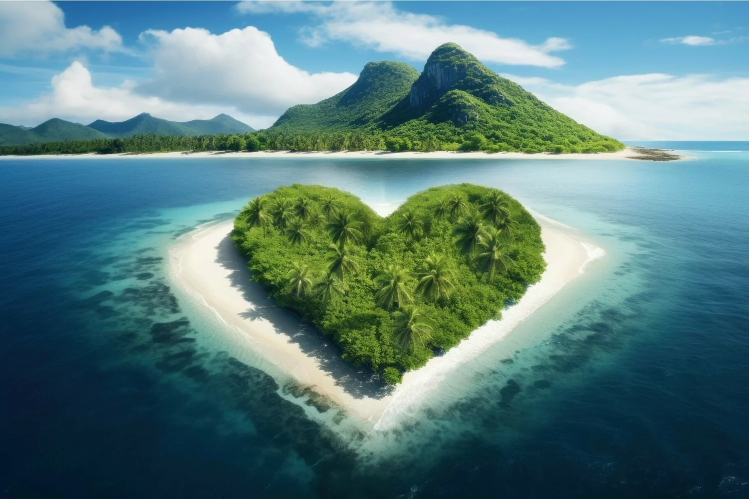 Lush Beautiful tropical island heart. Generate Ai example image 1