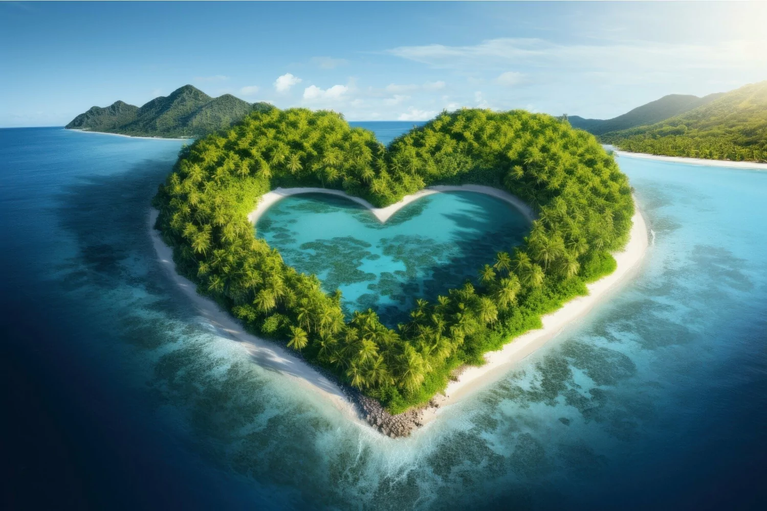 Picturesque Beautiful tropical island heart. Generate Ai example image 1