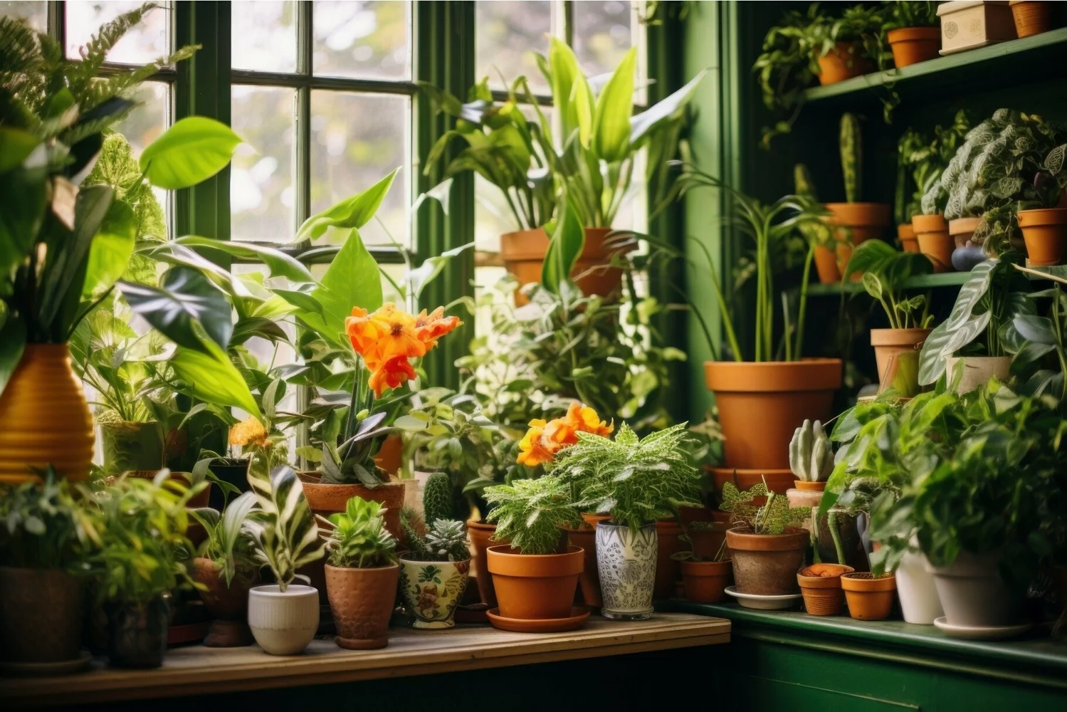 Fragrant Different houseplants. Home cozy design. Generate Ai