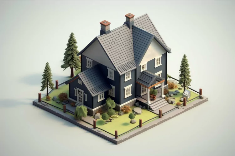 Similar Design Products to Monochromatic Gray house isometric. Generate Ai