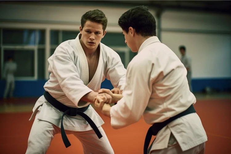 Strong Male training judo. Man training art male athlete. Generate Ai
