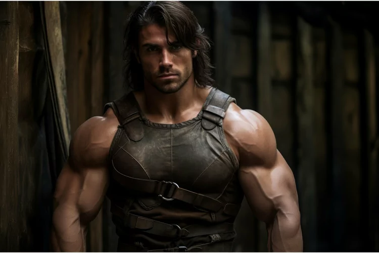 Vintage Man muscular medieval photo shot. Generate Ai example image 1