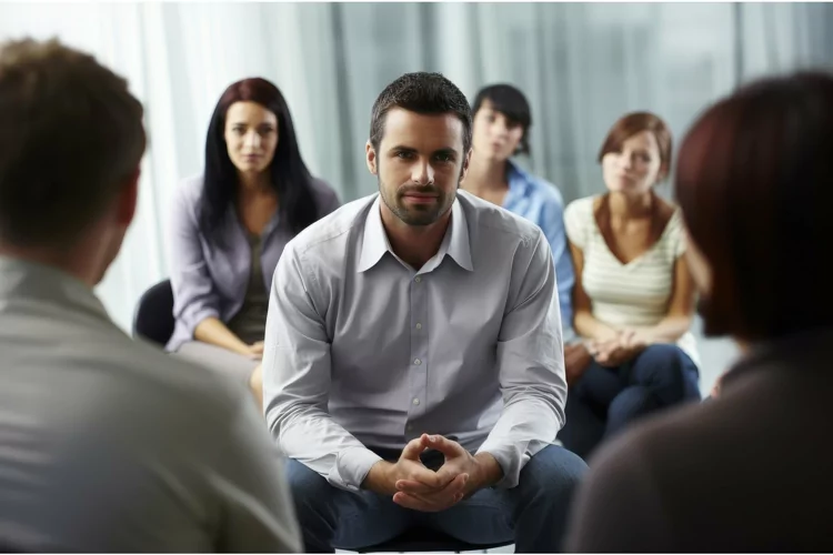 Nurturing Sad man support. Doctor mental. Generate Ai