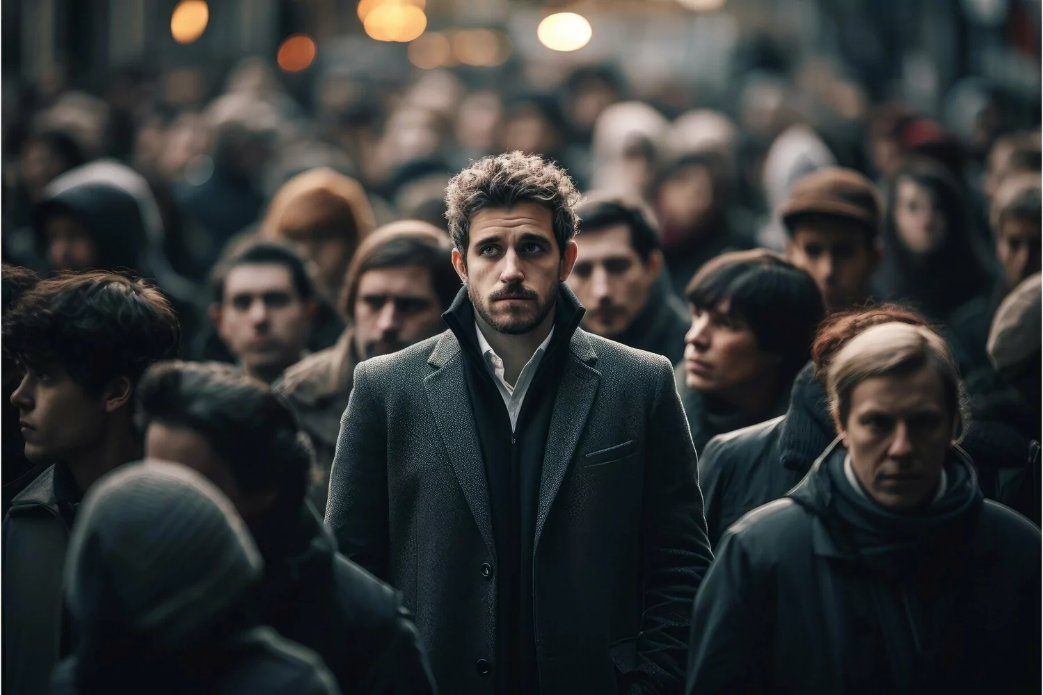 Man Urban Street Male Portrait Front Confident Mass Distinct Crowded