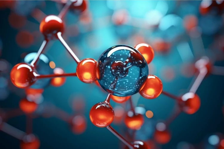 Vibrant Molecule 3d art. Chemistry structure health. Generate Ai