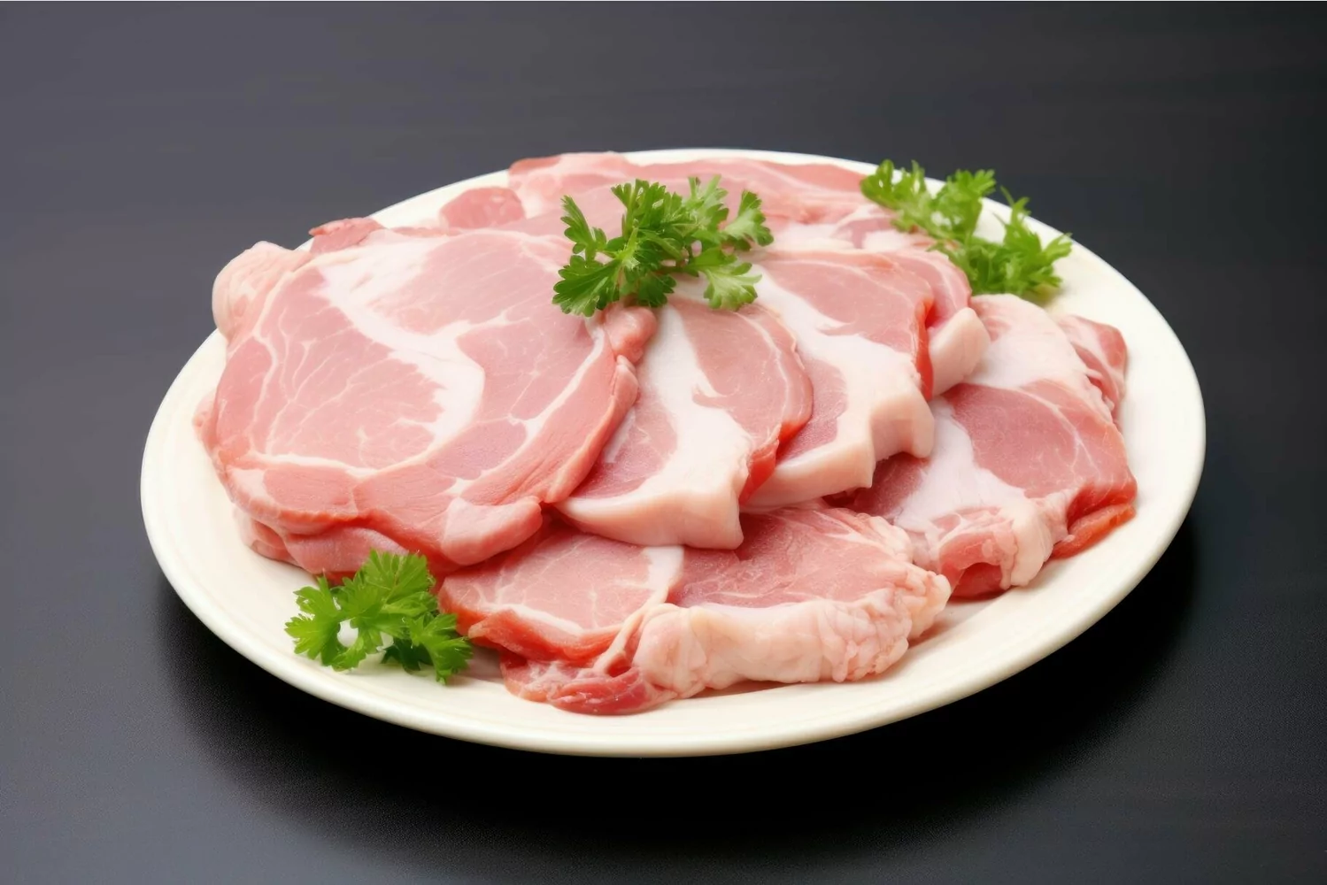 Thick Plate raw pork. Cutlet red. Generate Ai