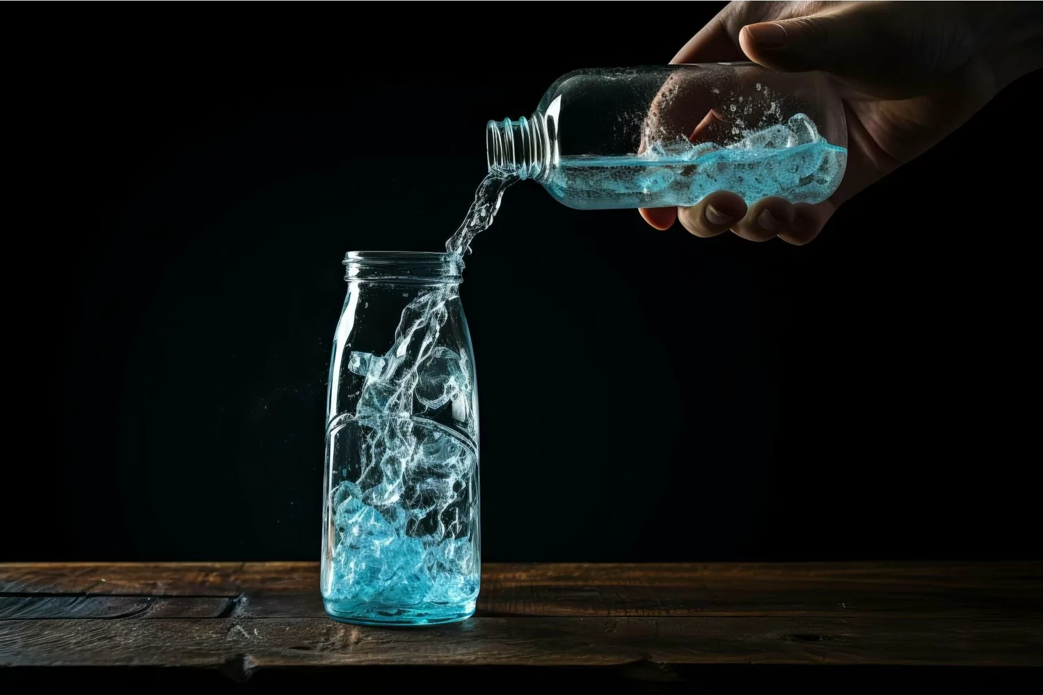 Pouring soda water bottle drink. Fresh asian liquid. Generate Ai