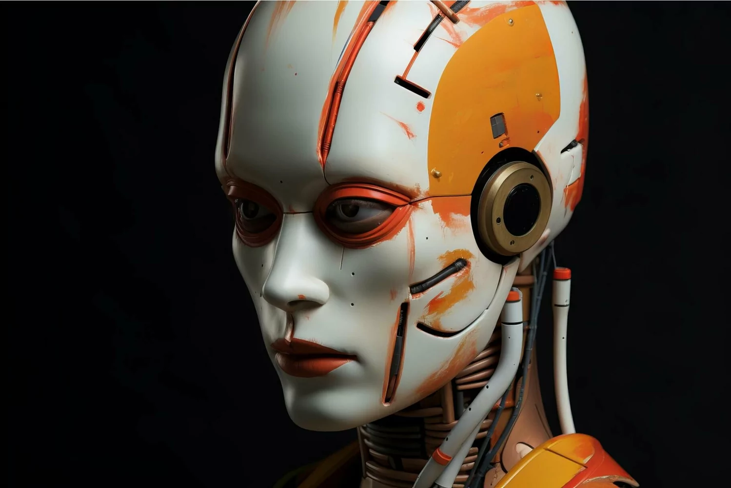 Incomplete android. Cyborg head futuristic. Generate Ai
