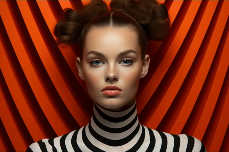 Stylish Glamour model portrait on red stripes style. Generat example image 1