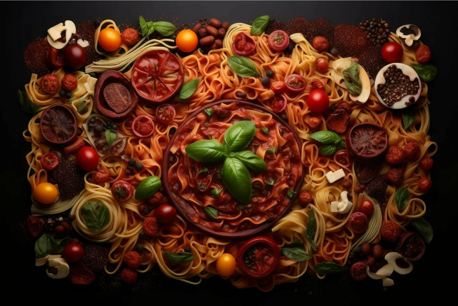 Similar Design Products to Delicious Pasta meat vegetables food. Generate Ai