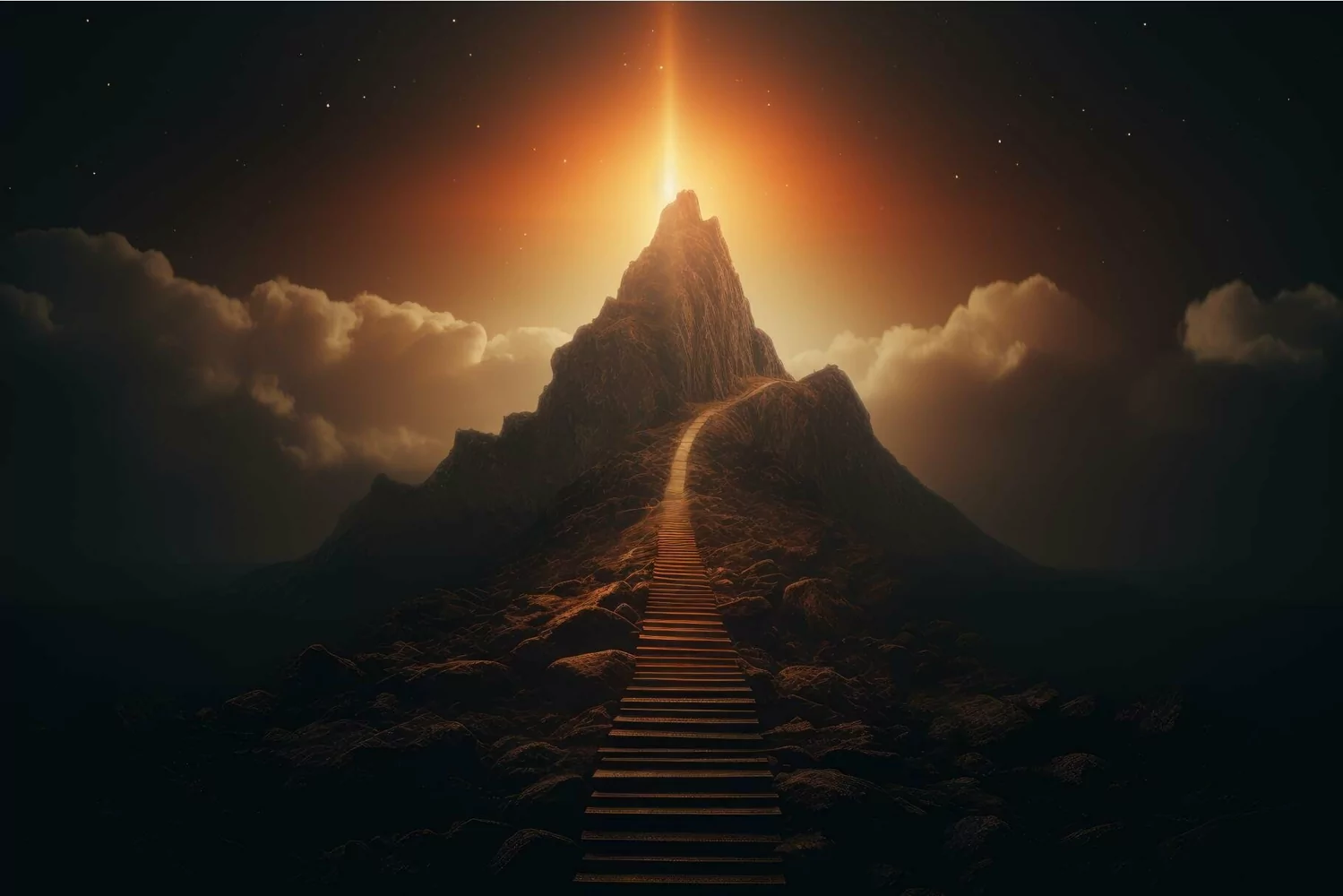 Luminous Path mountain light. Generate Ai example image 1