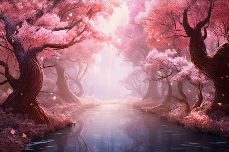 Enchanting Pink magical blossom forest. Generate Ai example image 1