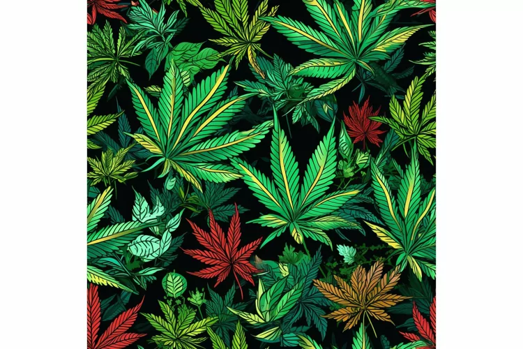 Calming Medical marijuana art seamless pattern. Flower drug. Generate Ai