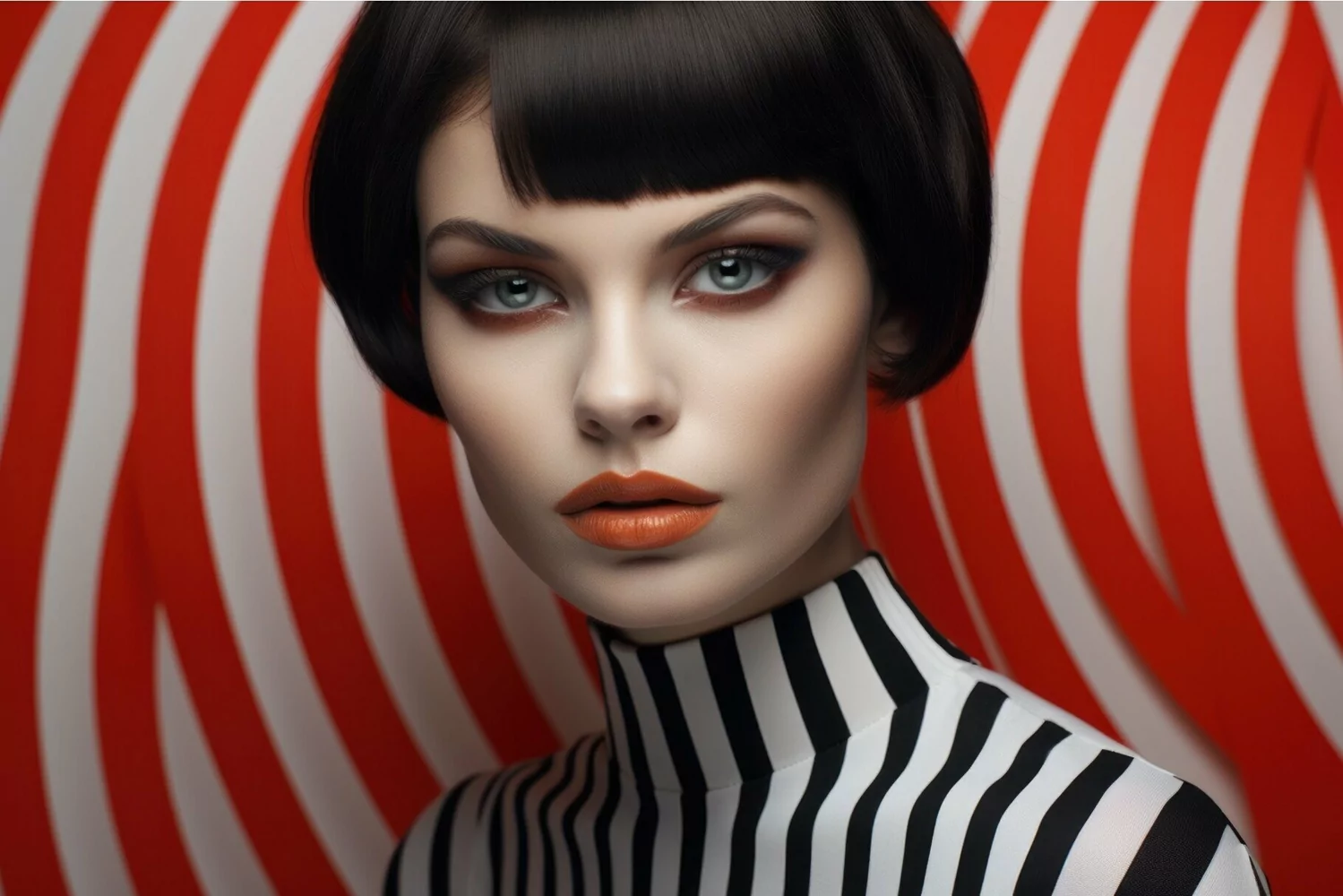 Elegant Glamour model portrait on red stripes style. Generat example image 1