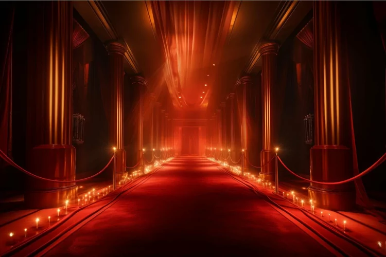 Shimmering Red carpet blurred glowing. Lifestyle festival. Generate Ai