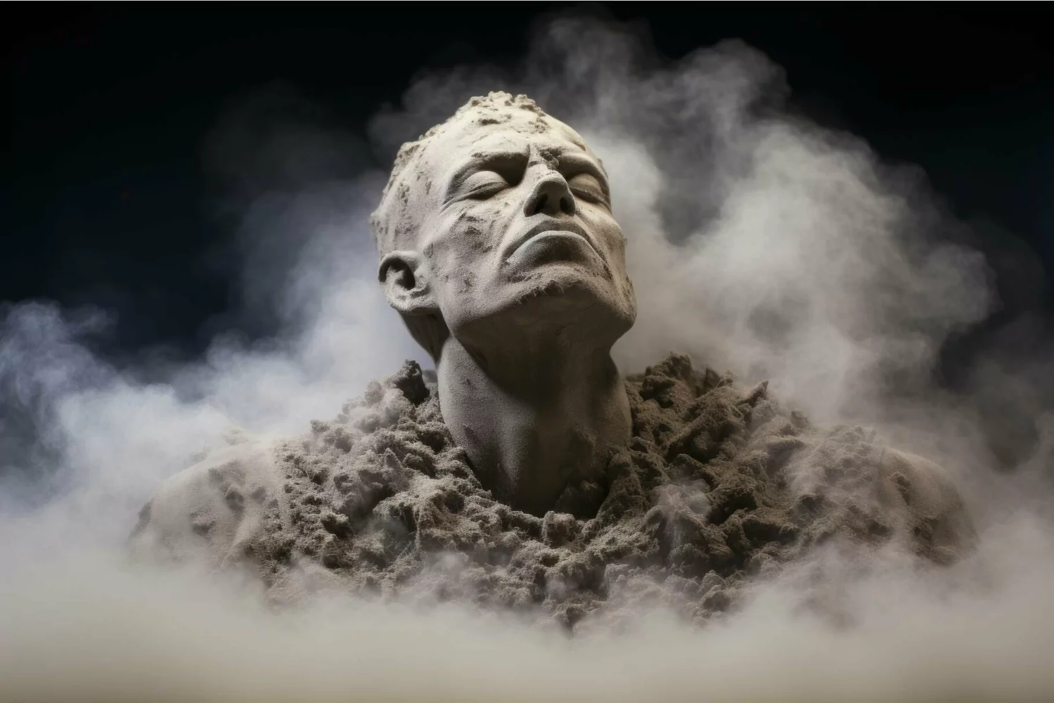 Similar Design Products to Sturdy Sculpted man dust breathing. Generate ai