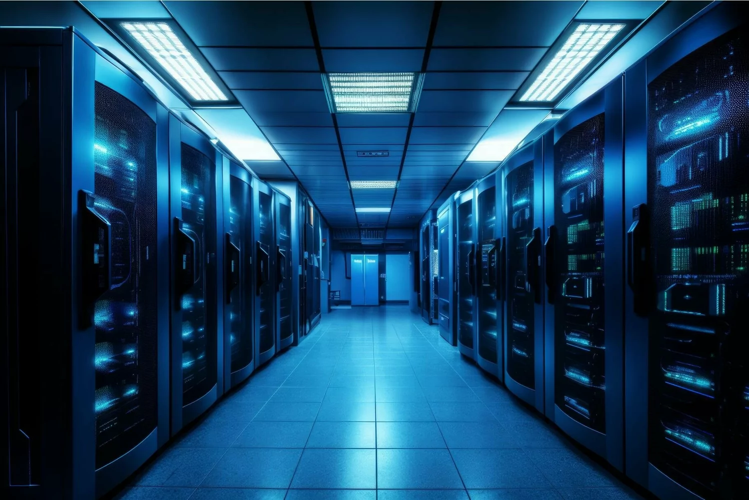 Modern Server blue room. Generate Ai example image 1
