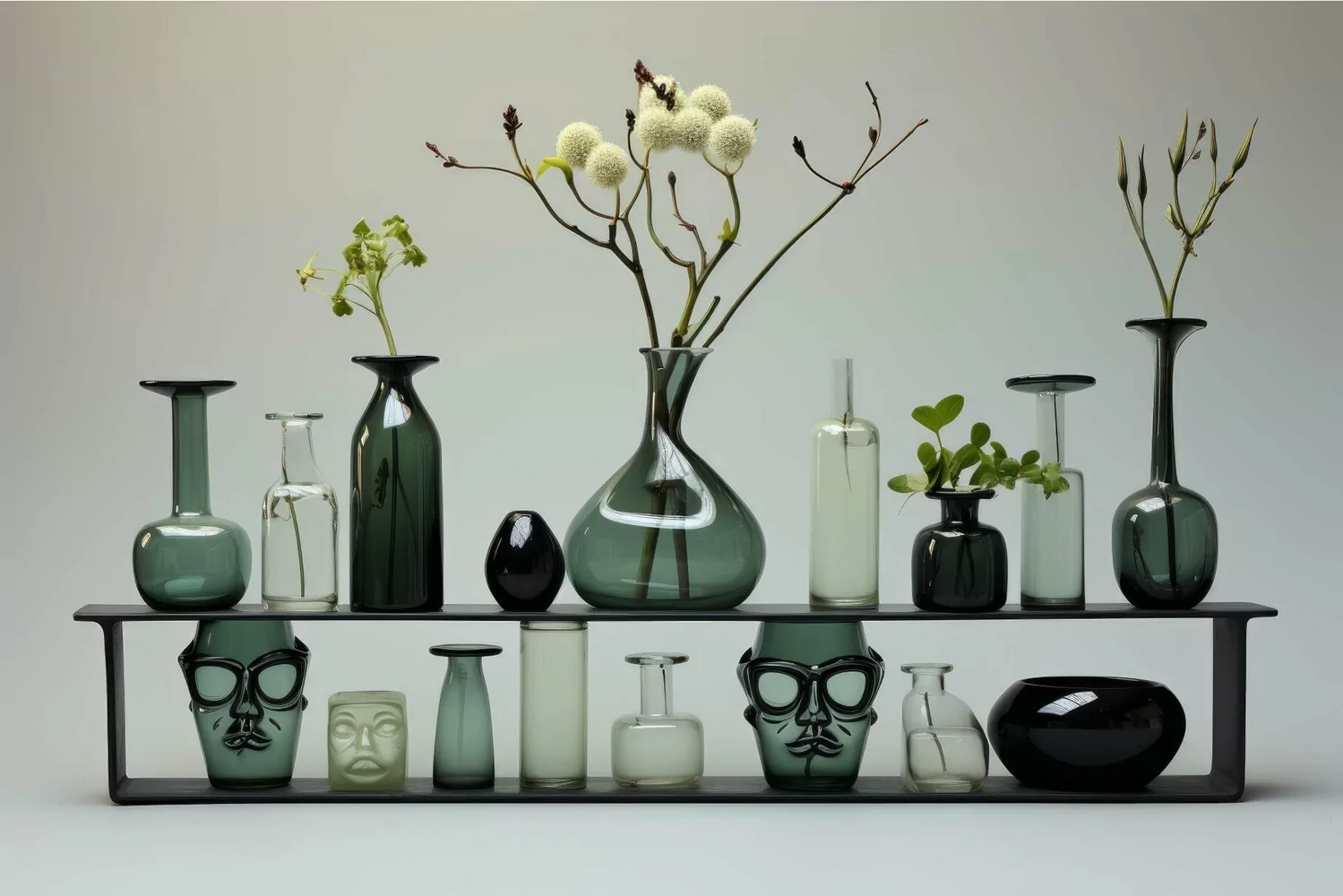 Similar Design Products to Ceramic Shelf colorful vases room. Generate Ai