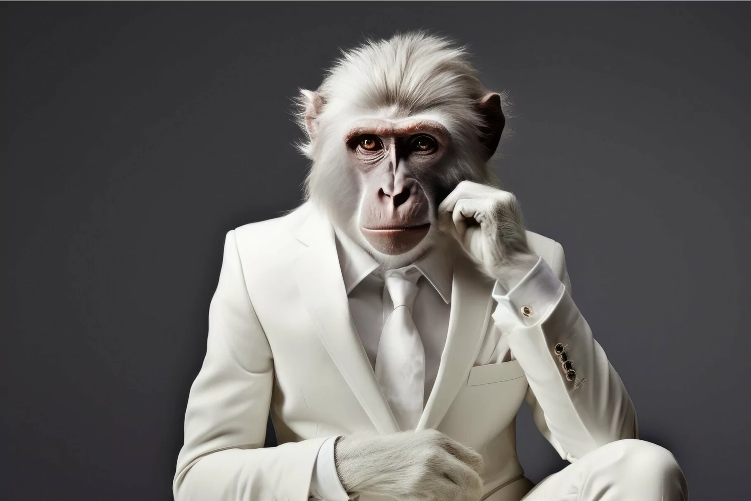 Similar Design Products to Sophisticated Monkey white suit. Generate Ai